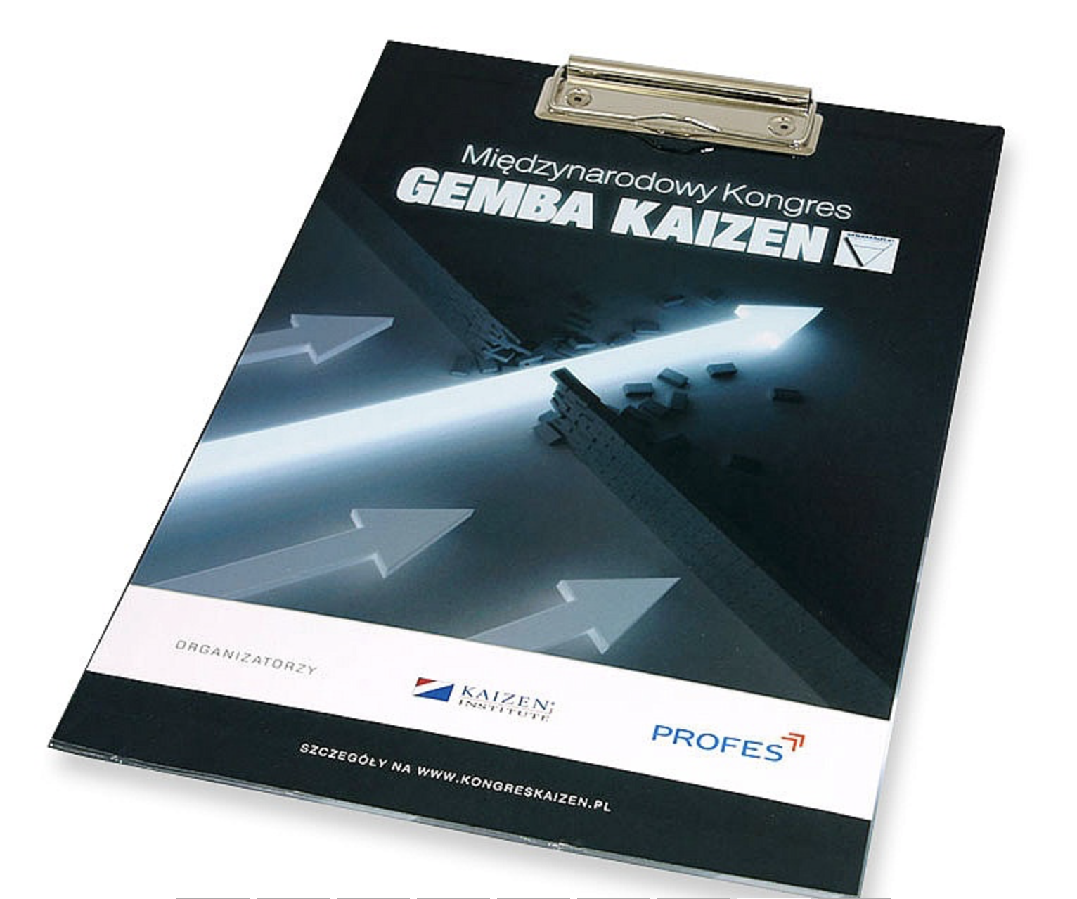 Clipboard – czyli popularna podkładka do notowania, świetnie sprawdzająca się u ankieterów, na szkoleniach oraz w każdej sytuacji, wymagającej zapisywania „w locie”. Duża powierzchnia reklamowa. Clipboard wykonany z kartonu litego 2,5mm, kaszerowanego dwustronnie wydrukiem CMYK na papierze samoprzylepnym, laminowanym folią matową lub błyszczącą. Clip metalowy – mocowanie opcjonalnie awers/rewers.